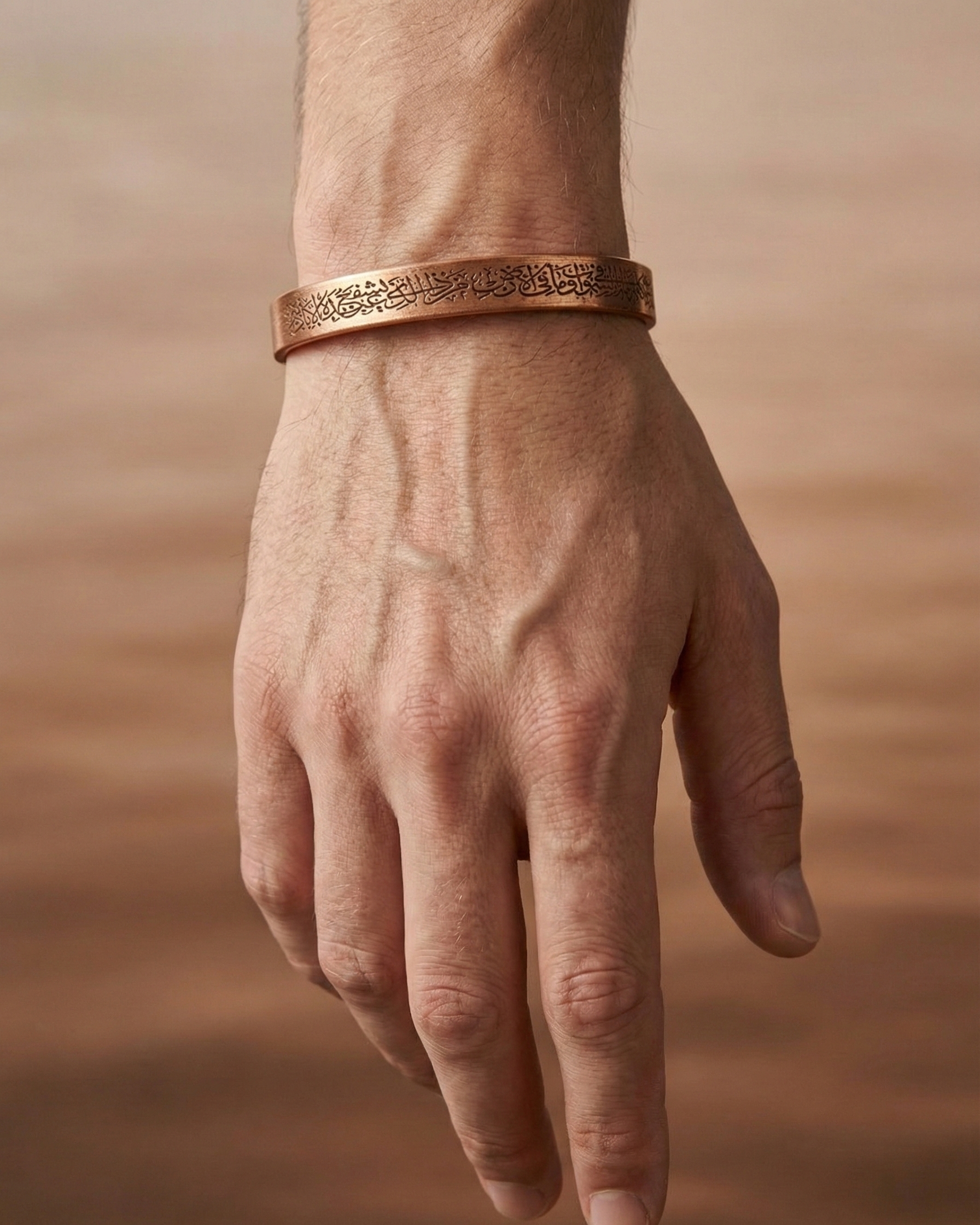 Ayet-el Kürsi Bakır Bileklik, kalbinde huzur arayanlar ve maneviyatı stilinin bir parçası haline getirmek isteyenler için tasarlandı.
