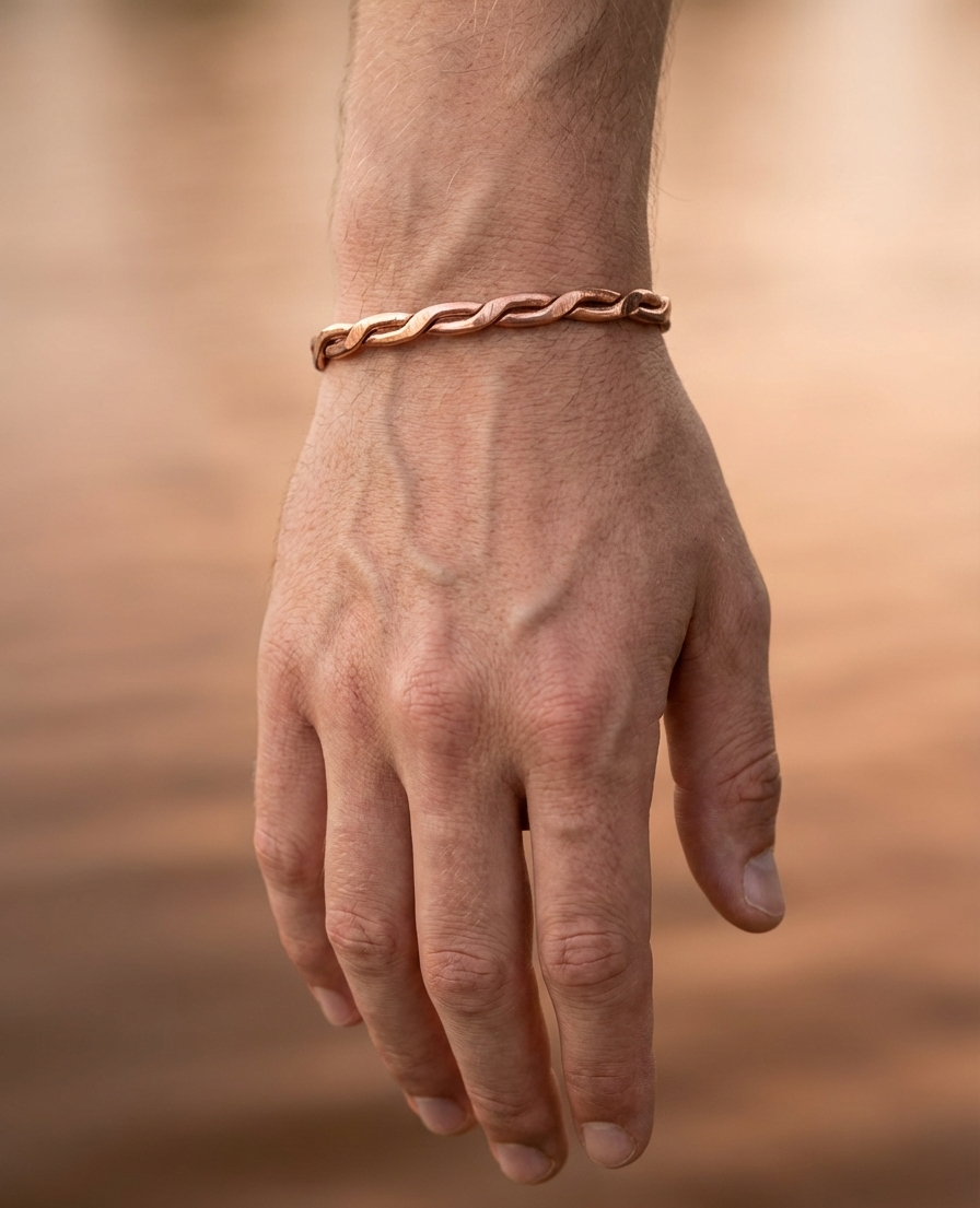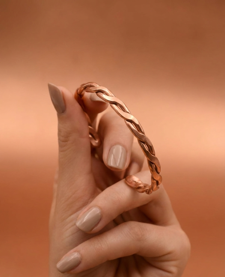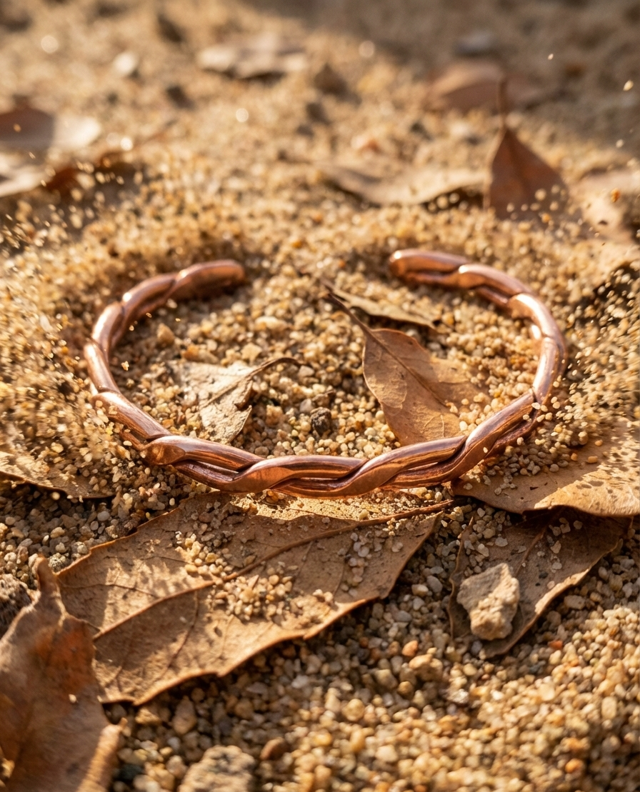 Doğal bakırın sıcaklığıyla birleşen bu tasarım, hem günlük kullanımda rahatlık sunar hem de stiline karakter katar. Hafif yapısı sayesinde gün boyu konfor sağlar; minimal ama güçlü duruşuyla her kombini tamamlar.