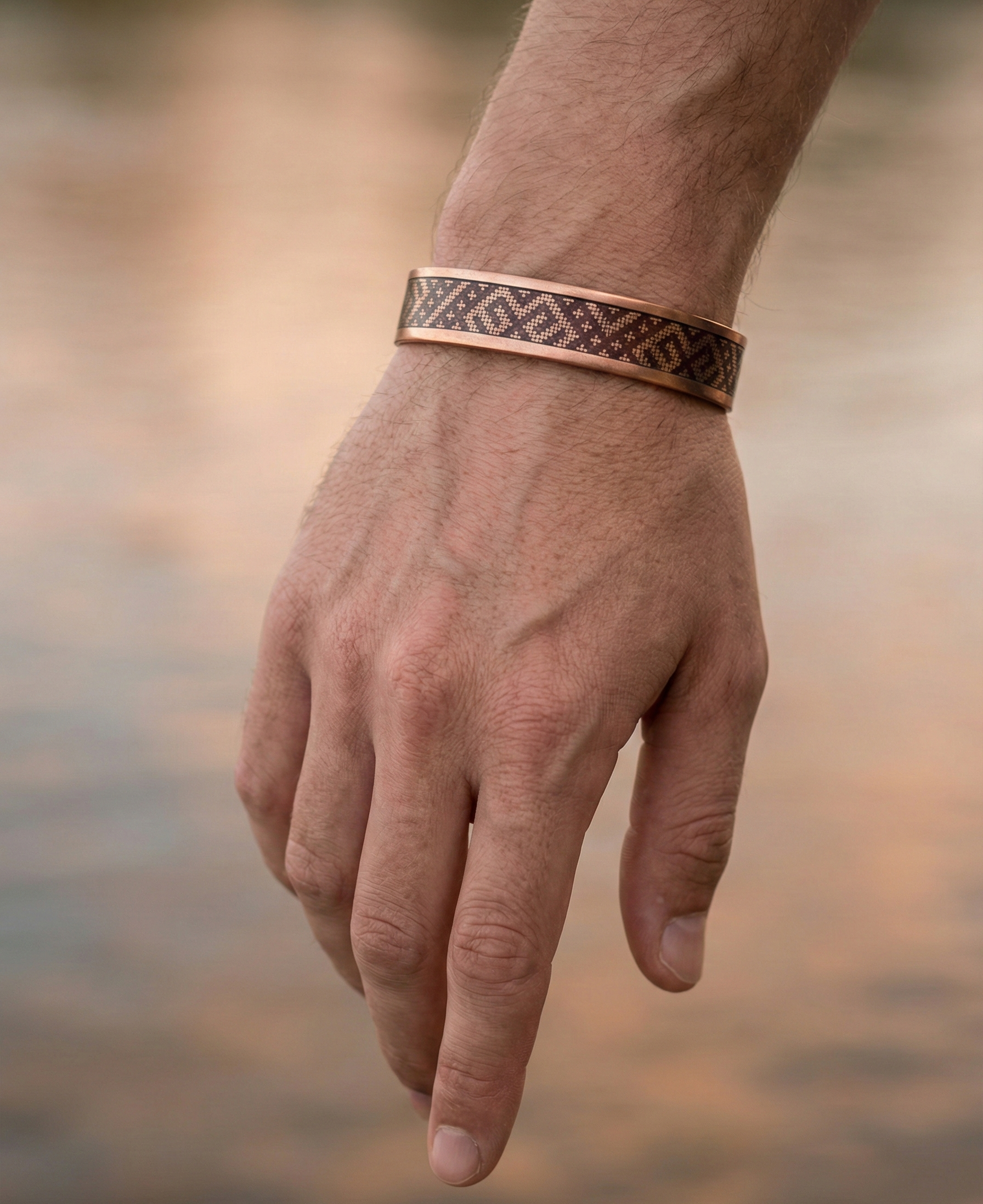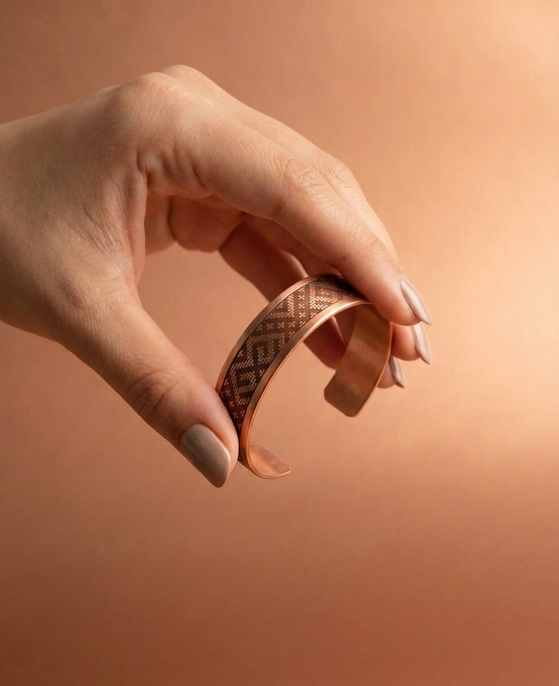 Doğal bakırın sıcak dokusu ve özel işçiliğiyle, günlük kombinlere karakter katar, özel anlarda ise güçlü bir duruş sunar. Zamansız formu sayesinde her stile uyum sağlar, bulunduğu ortamda kendini fark ettirir.