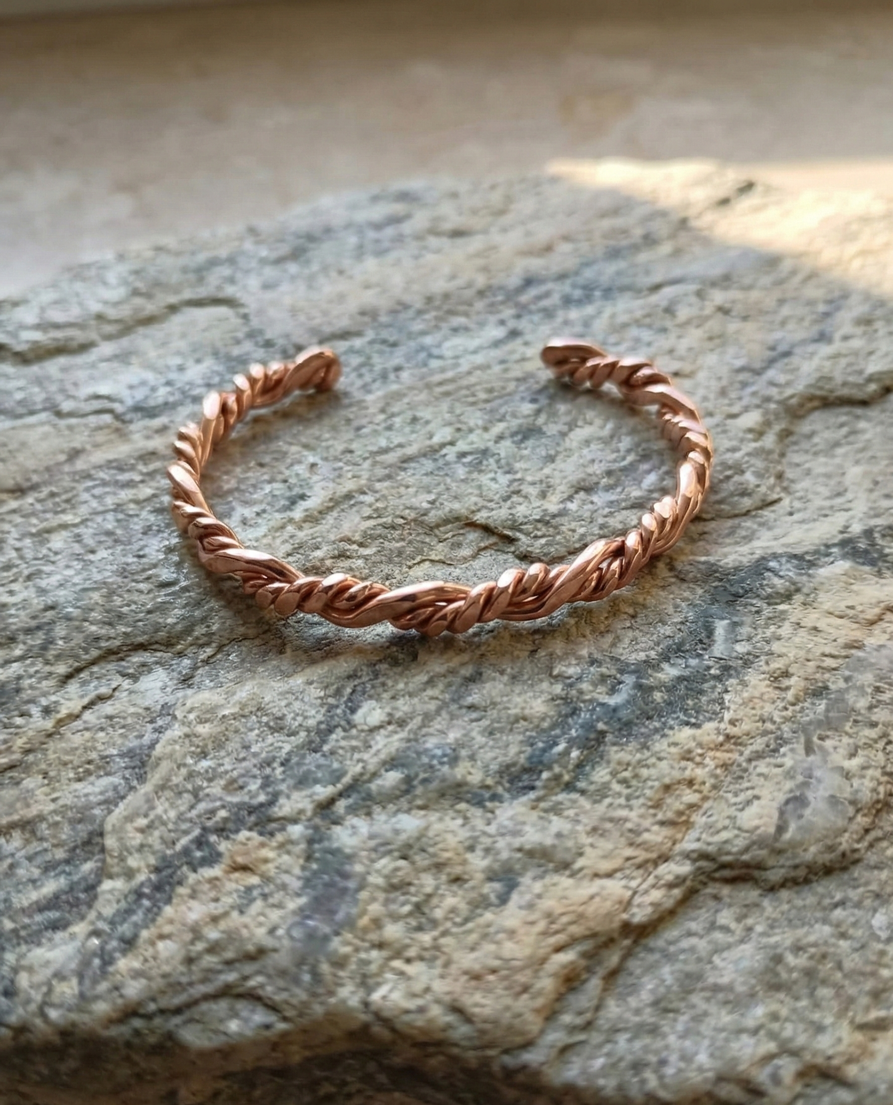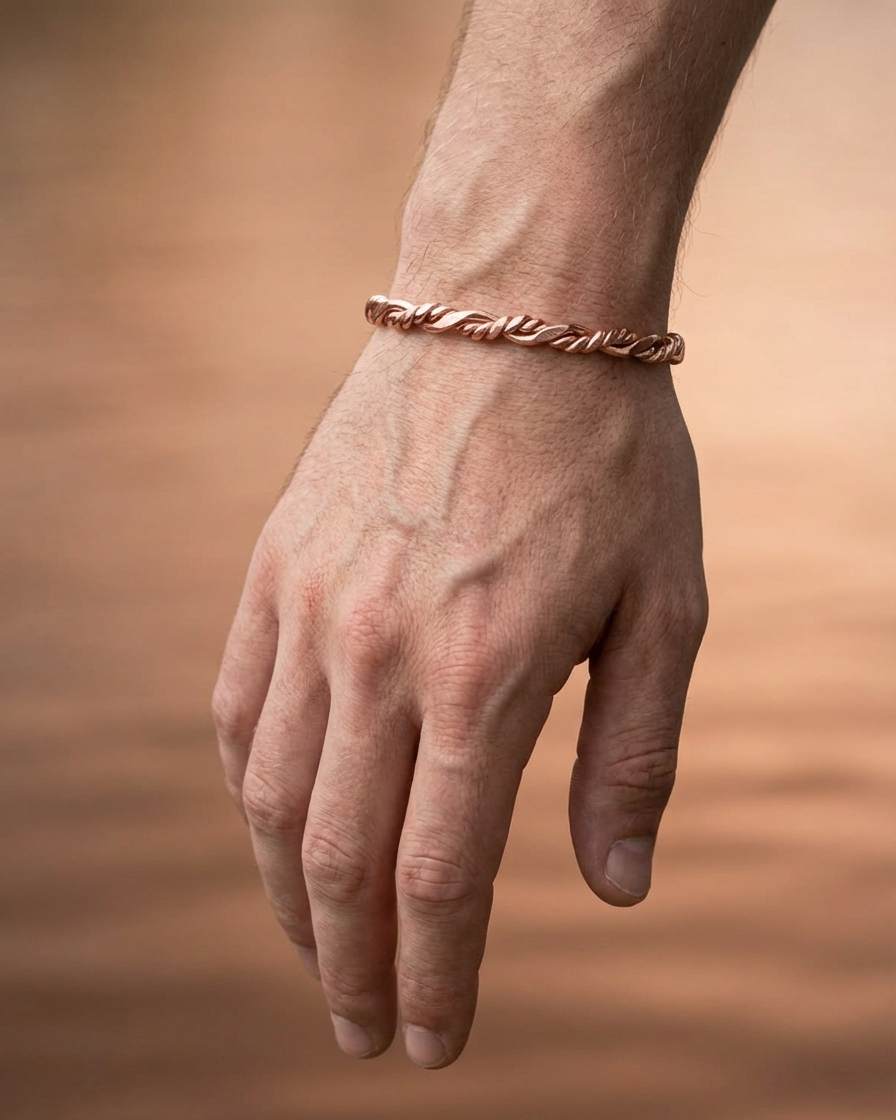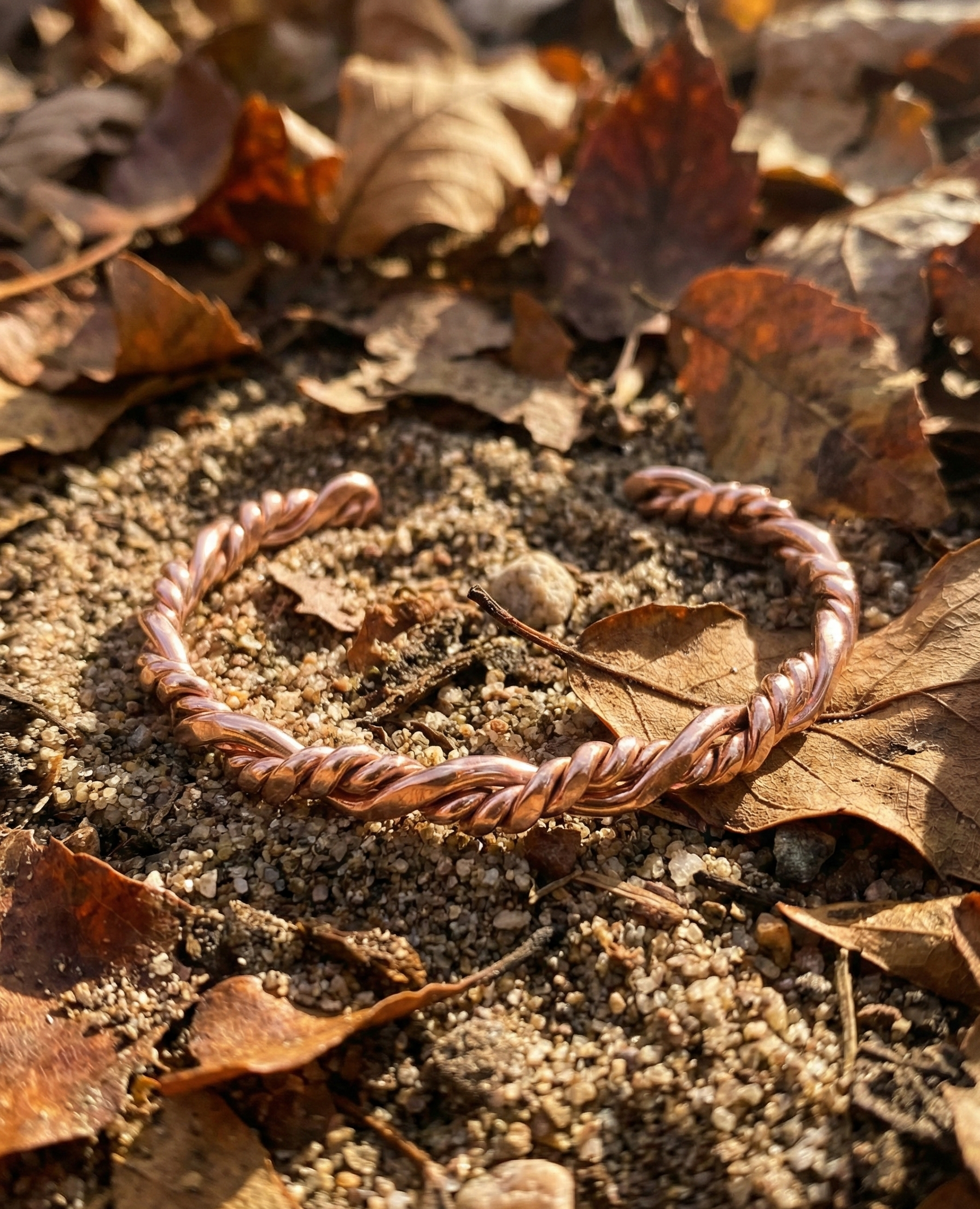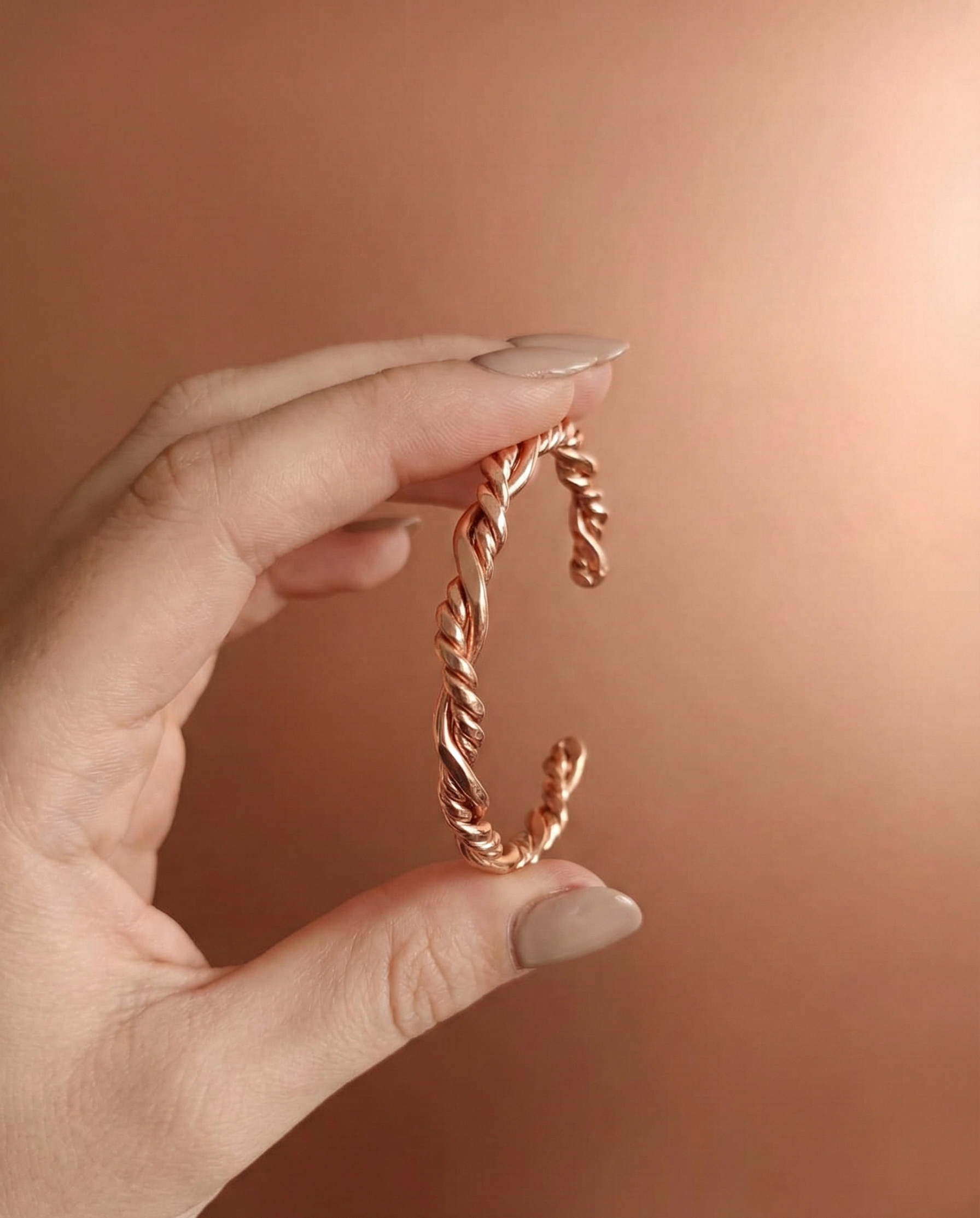 Doğal bakırın sıcak dokusu ve tok yapısıyla hem güçlü bir duruş sunar hem de günlük kullanımda maksimum konfor sağlar. Minimal ama etkili tasarımı sayesinde her kombine rahatça uyum sağlar.