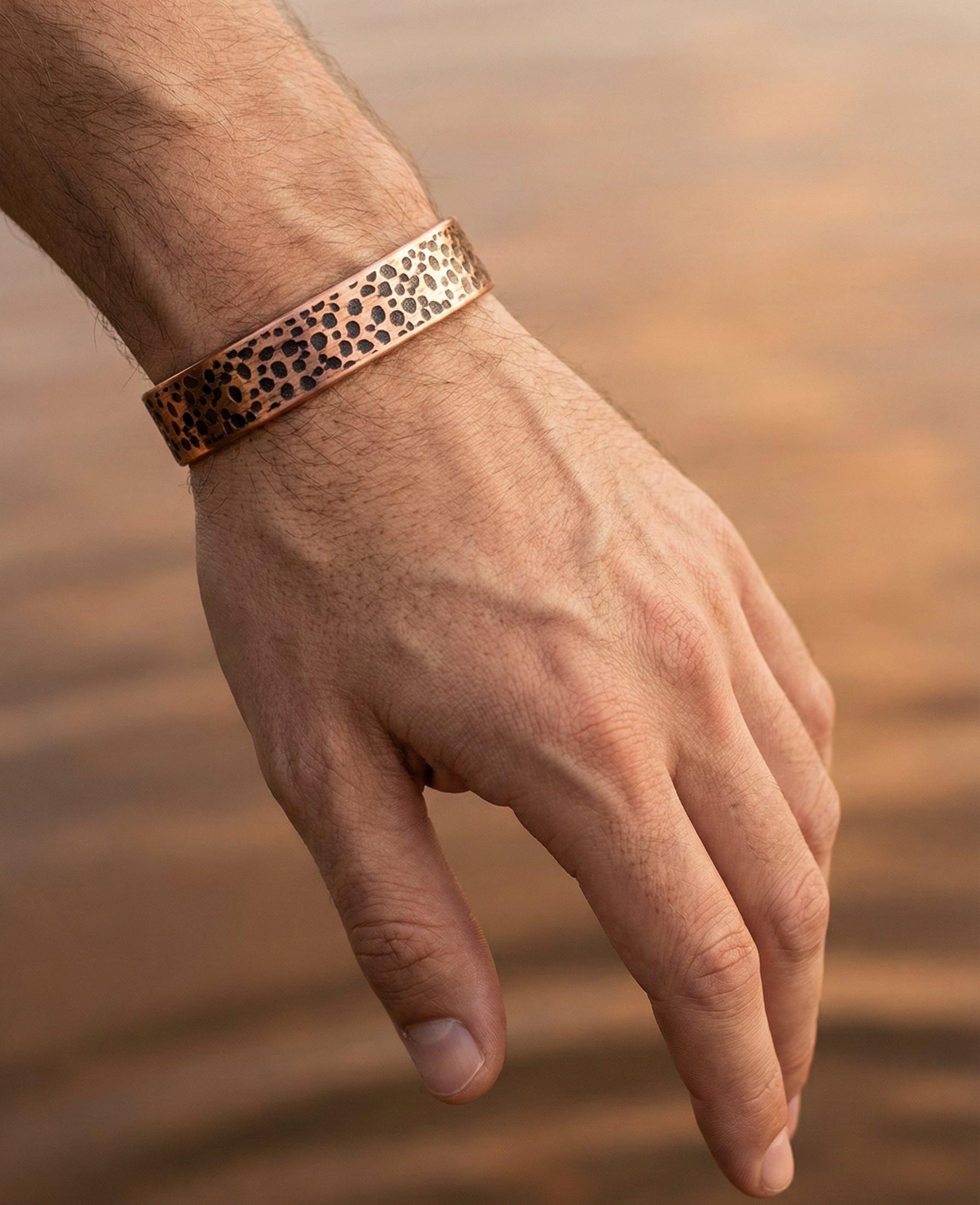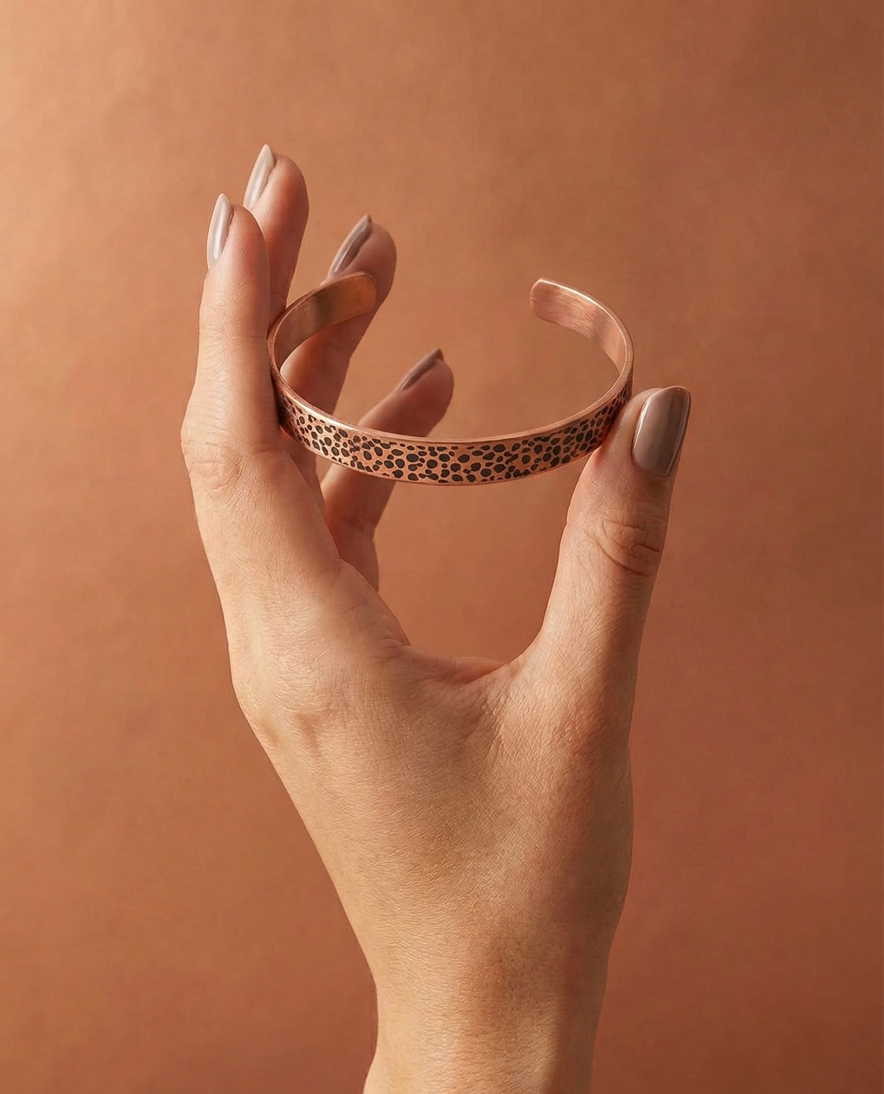Doğal bakırın sıcaklığı ve tok formu sayesinde hem günlük kullanımda rahatlık sunar hem de kombinlerine güçlü bir vurgu yapar. Minimal ama etkili. Sade ama iddialı.