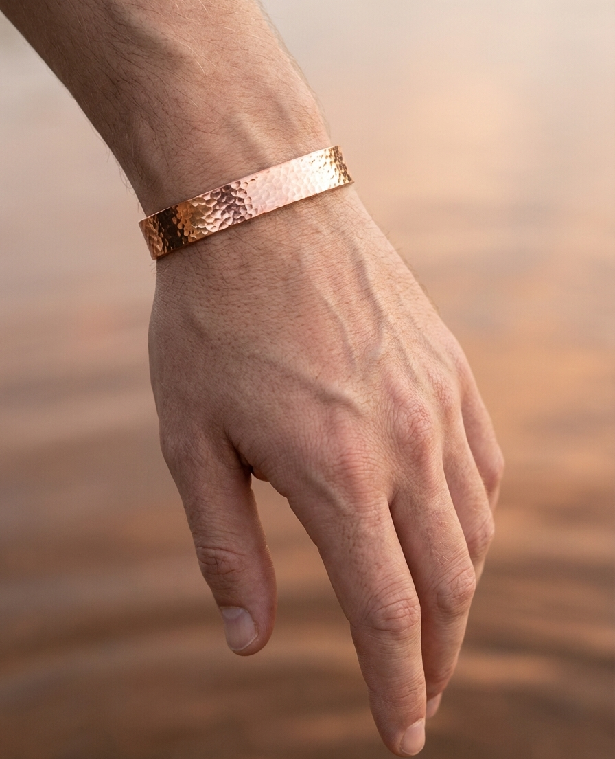 Doğal bakırın sıcaklığı ve tok formu, hem konfor hem de güçlü bir duruş sunar. Günlük kombinlerde sade şıklık sağlar, özel anlarda ise sakin ama etkili bir tamamlayıcı olur.