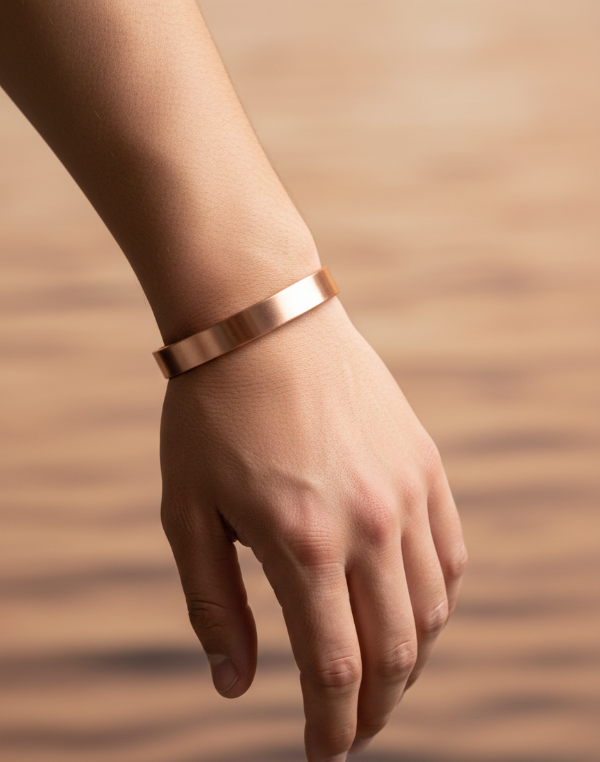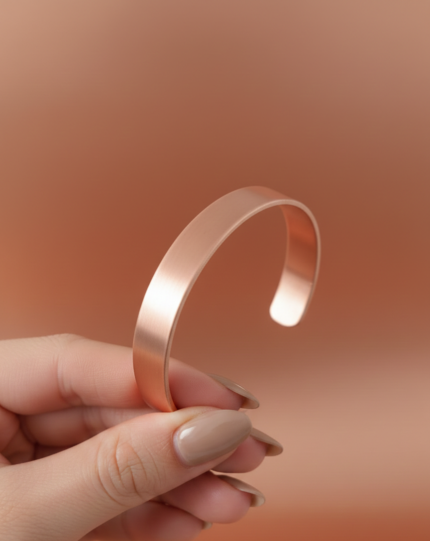 Doğal bakırın sıcak dokusu ve hafif yapısıyla gün boyu konfor sunar. Günlük kombinlerde zahmetsiz şıklık sağlar, özel anlarda ise temiz ve güçlü bir tamamlayıcı olur.