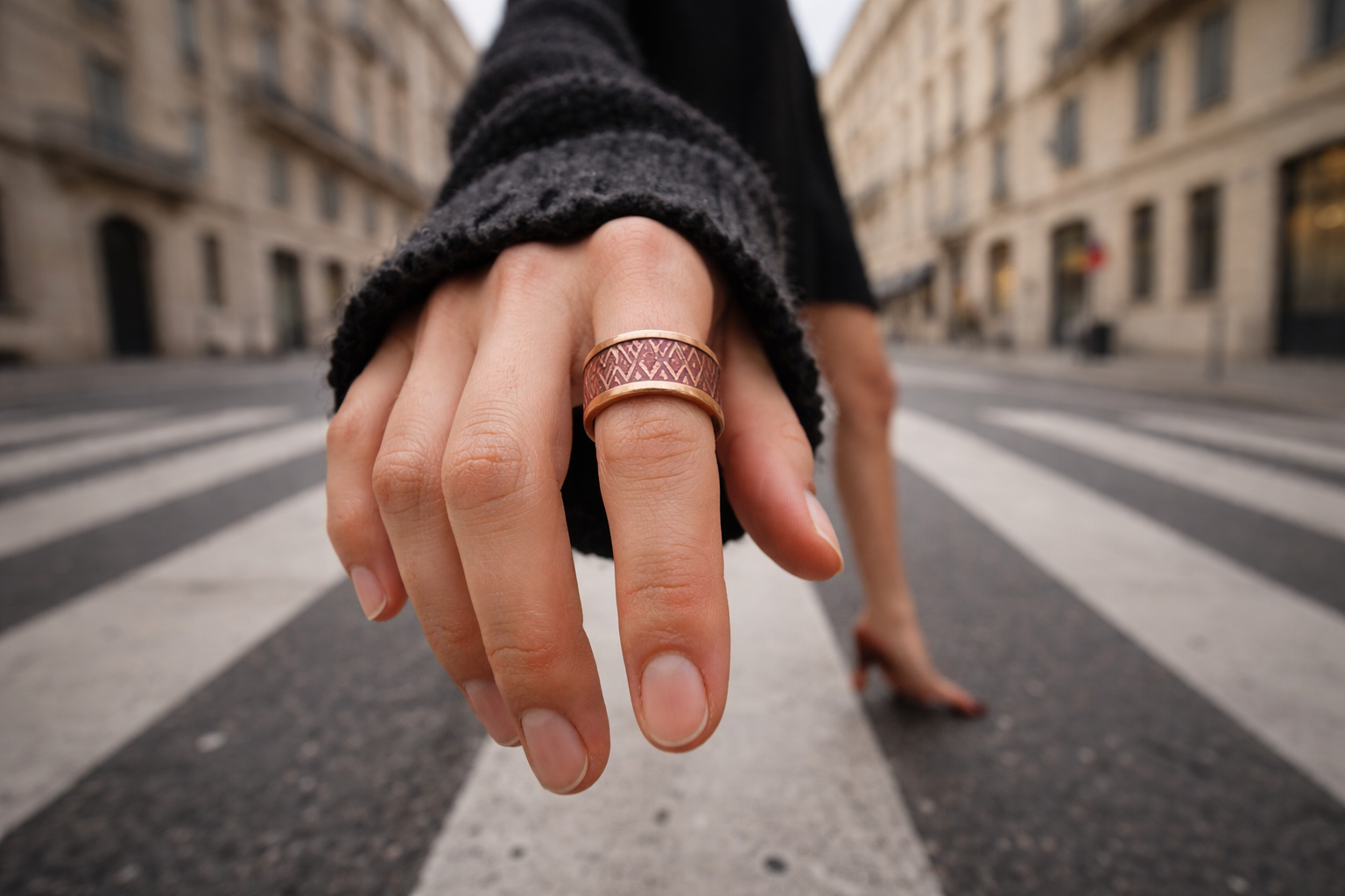 Doğal bakırın sıcak dokusu ve özel işçiliğiyle, günlük kombinlere karakter katar, özel anlarda ise güçlü bir duruş sunar. Zamansız formu sayesinde her stile uyum sağlar, bulunduğu ortamda kendini fark ettirir.
