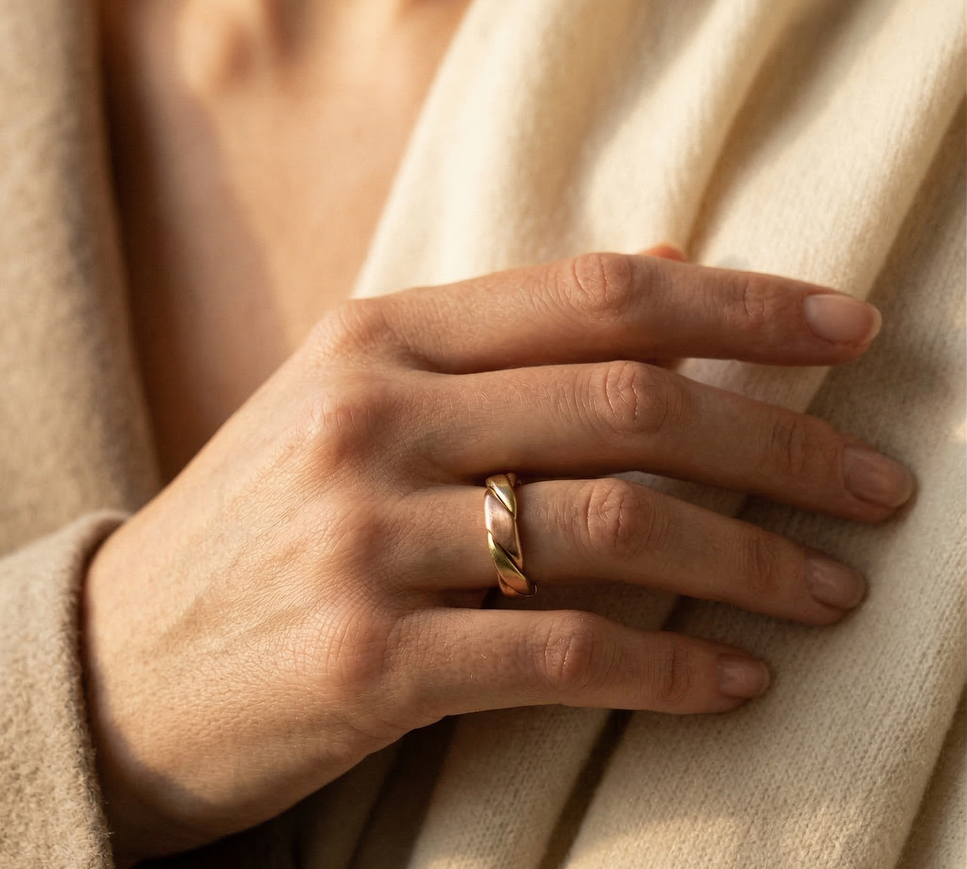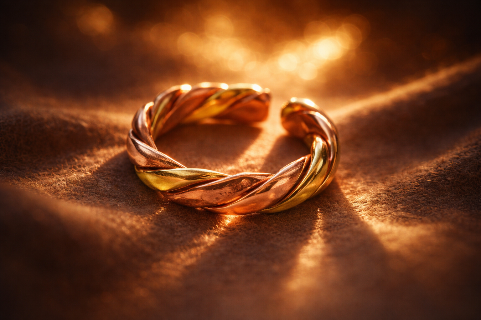 Harman, farklı tonların tek bir ahenk içinde buluşmasından ilham alır. Bakırın sıcaklığı ile altın tonlarının ışıltısı, dengeli ve güçlü bir bütünlük oluşturur. Her kıvrım, uyumun ve birlikteliğin zarif bir yansımasıdır.