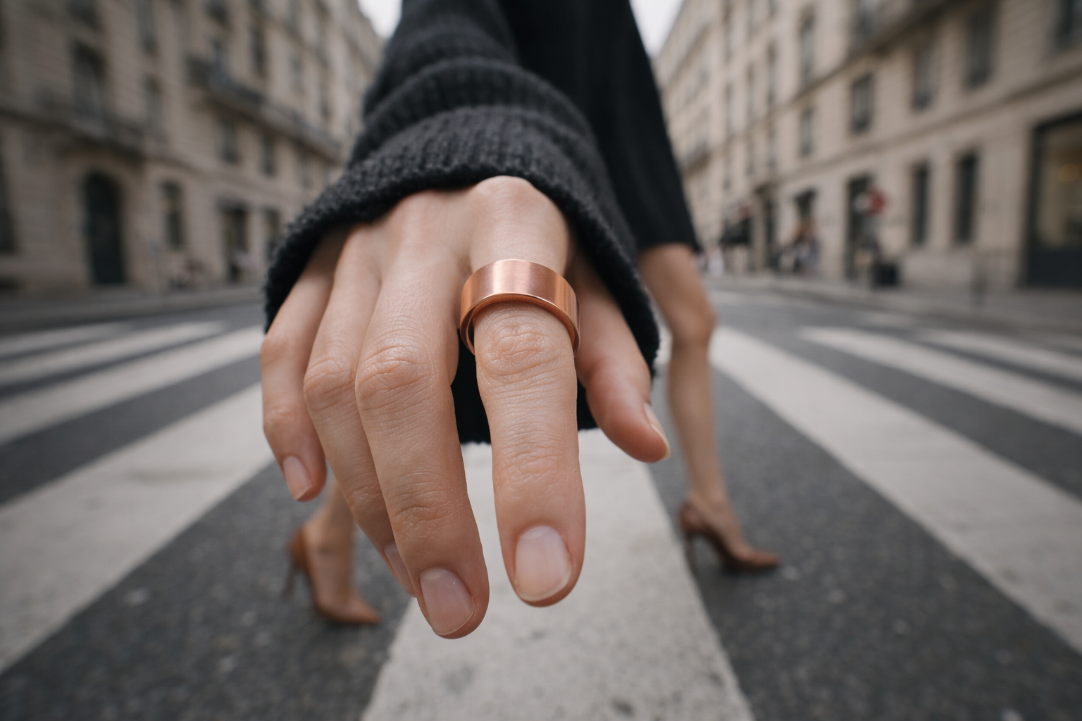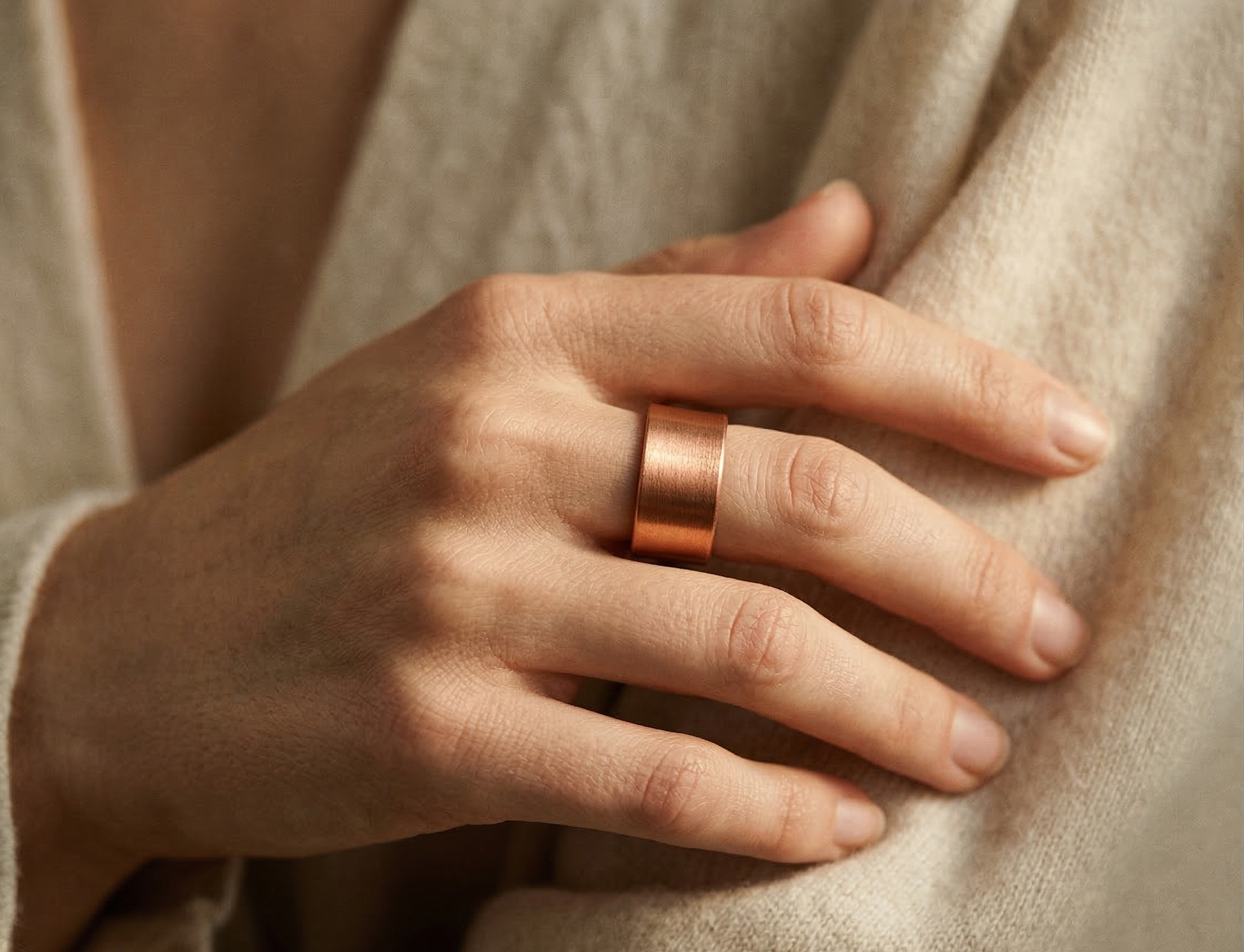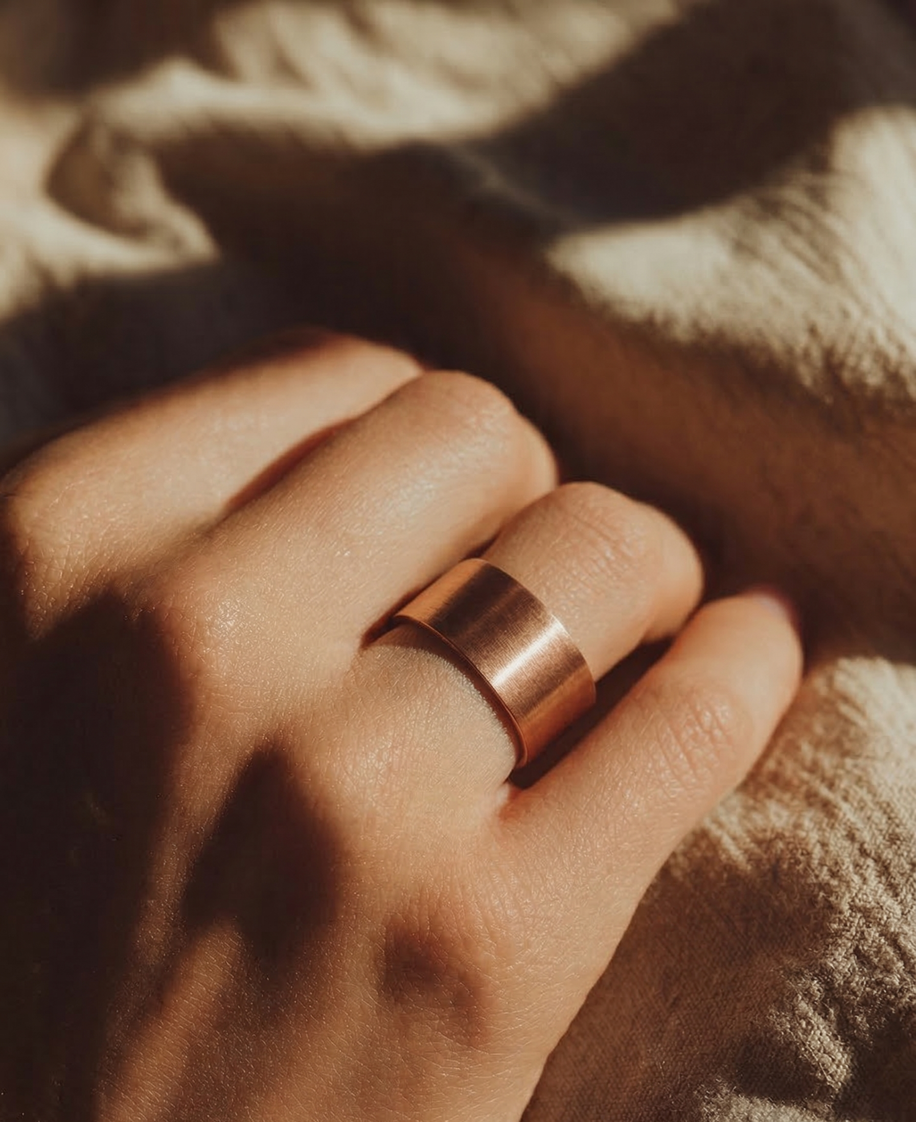 Doğal bakırın sıcak dokusu ve hafif yapısıyla gün boyu konfor sunar. Günlük kombinlerde zahmetsiz şıklık sağlar, özel anlarda ise temiz ve güçlü bir tamamlayıcı olur.